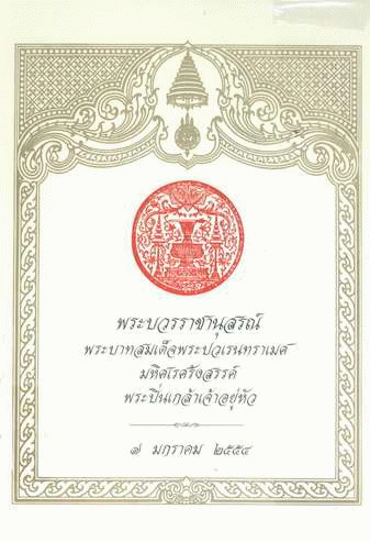 พระบวรราชานุสรณ์ พระบาทสมเด็จพระปวเรนทราเมศ มหิศเรศรังสรรค์ พระปิ่นเกล้าเจ้าอยู่หัว 7 มกราคม 2554