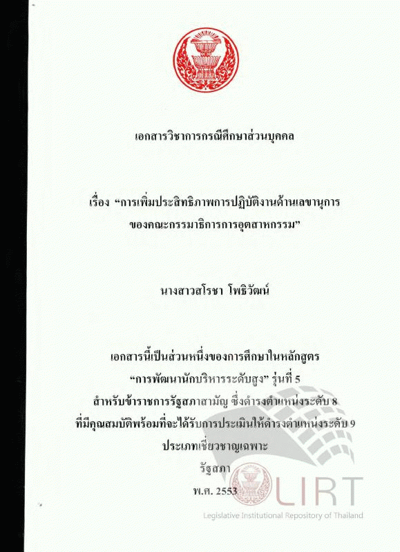 การเพิ่มประสิทธิภาพการปฏิบัติงานด้านเลขานุการของคณะกรรมาธิการการอุตสาหกรรม (เอกสารวิชาการกรณีศึกษาส่วนบุคคล)