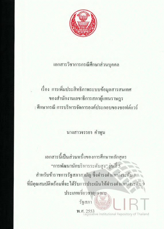 การเพิ่มประสิทธิภาพระบบข้อมูลสารสนเทศของสำนักงานเลขาธิการสภาผู้แทนราษฎร : ศึกษากรณี การบริหารจัดการองค์ประกอบของซอฟต์แวร์ (เอกสารวิชาการกรณีศึกษาส่วนบุคคล).