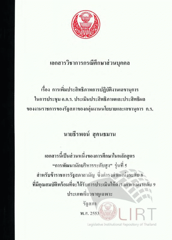 การเพิ่มประสิทธิภาพการปฏิบัติงานเลขานุการในการประชุม อ.ก.ร. ประเมินประสิทธิภาพและประสิทธิผลของงานราชการของรัฐสภาของกลุ่มงานนโยบายและเลขานุการ ก.ร. : เอกสารวิชาการกรณีศึกษาส่วนบุคคล