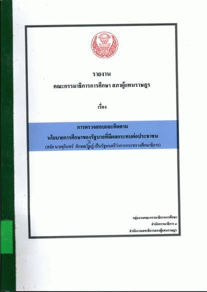 รายงานคณะกรรมาธิการการศึกษา สภาผู้แทนราษฎร เรื่อง การตรวจสอบและติดตามนโยบายการศึกษาของรัฐบาลที่มีผลกระทบต่อประชาชน (สมัย นายจุรินทร์ ลักษณวิศิษฏ์ เป็นรัฐมนตรีว่าการกระทรวงศึกษาธิการ) / สำนักกรรมาธิการ 3 สำนักงานเลขาธิการสภาผู้แทนราษฎร.