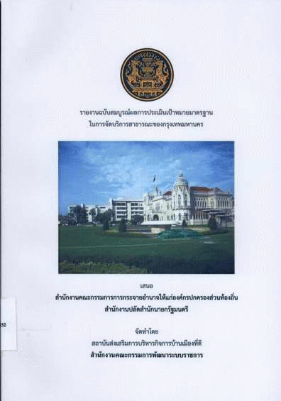 รายงานฉบับสมบูรณ์ผลการประเมินเป้าหมายมาตรฐานในการจัดบริการสาธารณะของกรุงเทพมหานคร