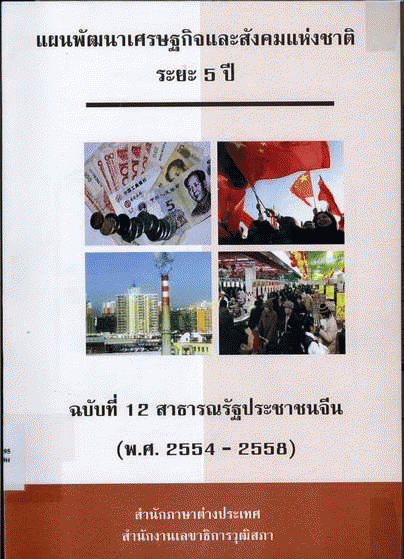 แผนพัฒนาเศรษฐกิจและสังคมแห่งชาติ ระยะ 5 ปี ฉบับที่ 12 สาธารณรัฐประชาชนจีน (พ.ศ. 2554 - 2558) / เรวัต วรรณนุรักษ์.