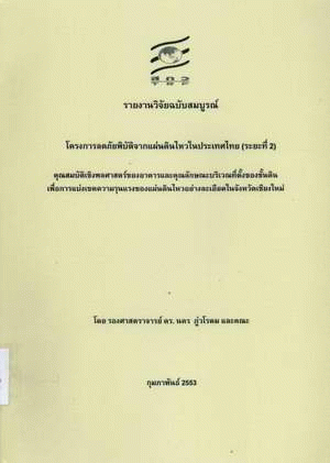 โครงการลดภัยพิบัติจากแผ่นดินไหวในประเทศไทย (ระยะที่ 2) คุณสมบัติเชิงพลศาสตร์ของอาคารและคุณลักษณะบริเวณที่ตั้งของชั้นดินเพื่อการแบ่งเขตความรุนแรงของแผ่นดินไหวอย่างละเอียดในจังหวัดเชียงใหม่