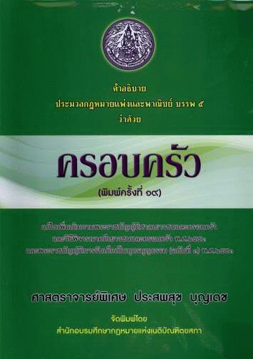 คำอธิบายประมวลกฎหมายแพ่งและพาณิชย์ บรรพ 5 ว่าด้วย ครอบครัว / ประสพสุข บุญเดช.