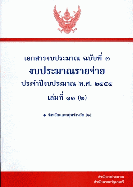 เอกสารงบประมาณ ฉบับที่ 3 งบประมาณรายจ่าย ประจำปีงบประมาณ พ.ศ. 2555 เล่มที่ 11 (2) จังหวัดและกลุ่มจังหวัด (2) / สำนักงบประมาณ.
