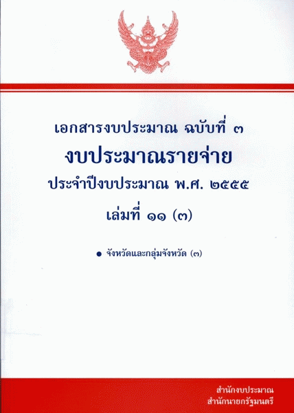เอกสารงบประมาณ ฉบับที่ 3 งบประมาณรายจ่าย ประจำปีงบประมาณ พ.ศ. 2555 เล่มที่ 11 (3) จังหวัดและกลุ่มจังหวัด (3) / สำนักงบประมาณ.