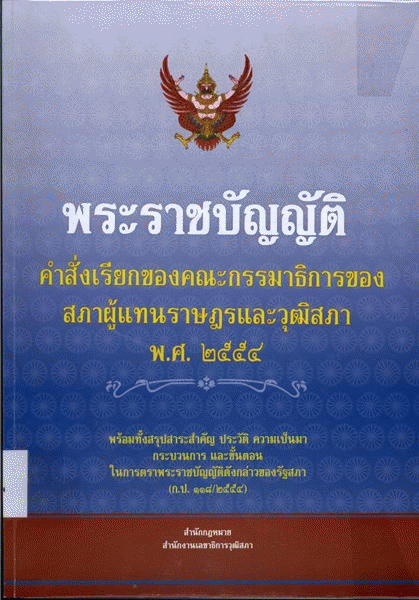 พระราชบัญญัติคำสั่งเรียกของคณะกรรมาธิการของสภาผู้แทนราษฎรและวุฒิสภา พ.ศ. 2554 พร้อมทั้งสรุปสาระสำคัญ ประวัติ ความเป็นมา กระบวนการ และขั้นตอนในการตราพระราชบัญญัติดังกล่าวของรัฐสภา