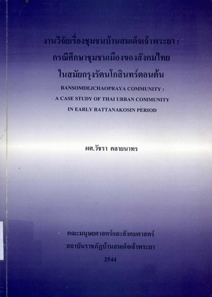 - งานวิจัยเรื่องชุมชนบ้านสมเด็จเจ้าพระยา : กรณีศึกษาชุมชนเมืองของสังคมไทยในสมัยกรุงรัตนโกสินทร์ตอนต้น [Cover title]