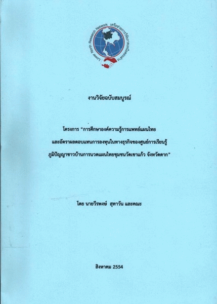 โครงการ "การศึกษาองค์ความรู้การแพทย์แผนไทยและอัตราผลตอบแทนการลงทุนในทางธุรกิจของศูนย์การเรียนรู้ภูมิปัญญาชาวบ้านการนวดแผนไทยชุมชนวัดเขาแก้ว จังหวัดตาก"