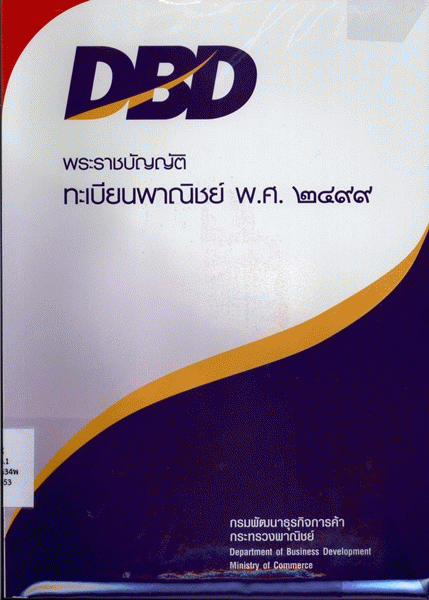 พระราชบัญญัติทะเบียนพาณิชย์ พ.ศ. 2499 / กรมพัฒนาธุรกิจการค้า กระทรวงพาณิชย์.
