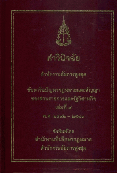 คำวินิจฉัยสำนักงานอัยการสูงสุด ข้อหารือปัญหากฎหมายและสัญญาของส่วนราชการและรัฐวิสาหกิจ เล่มที่ 8 พ.ศ. 2542-2543