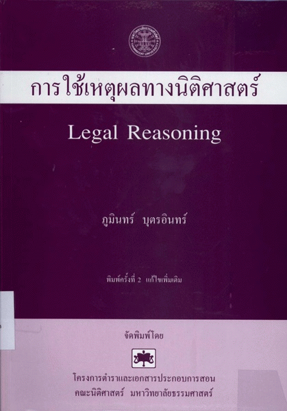 การใช้เหตุผลทางนิติศาสตร์ / ภูมินทร์ บุตรอินทร์.