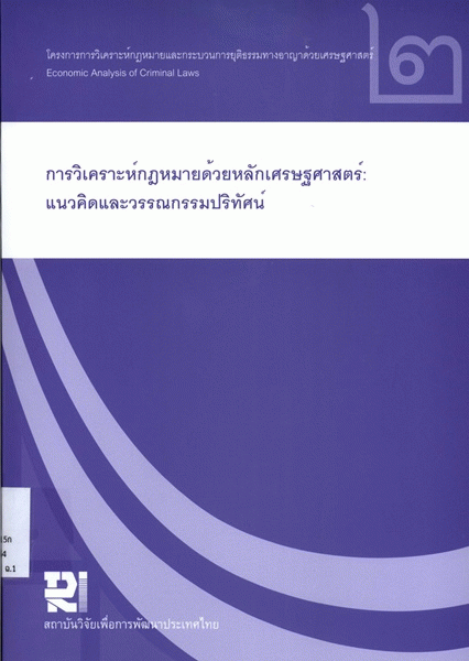 การวิเคราะห์กฎหมายด้วยหลักเศรษฐศาสตร์ : แนวคิดและวรรณกรรมปริทัศน์ 2 / ปกป้อง จันวิทย์.