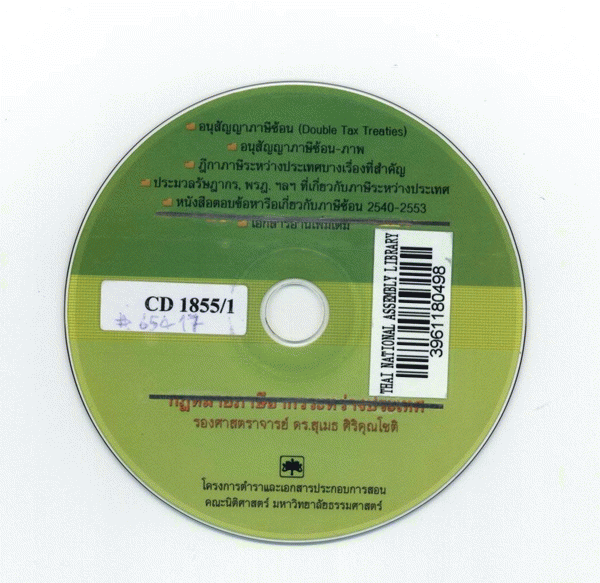 กฎหมายภาษีอากรระหว่างประเทศ [CD-ROM] / สุเมธ ศิริคุณโชติ.