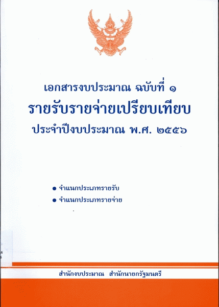 เอกสารงบประมาณ ฉบับที่ 1 รายรับรายจ่ายเปรียบเทียบ ประจำปีงบประมาณ พ.ศ. 2556 จำแนกประเภทรายรับ จำแนกประเภทรายจ่าย / สำนักงบประมาณ.