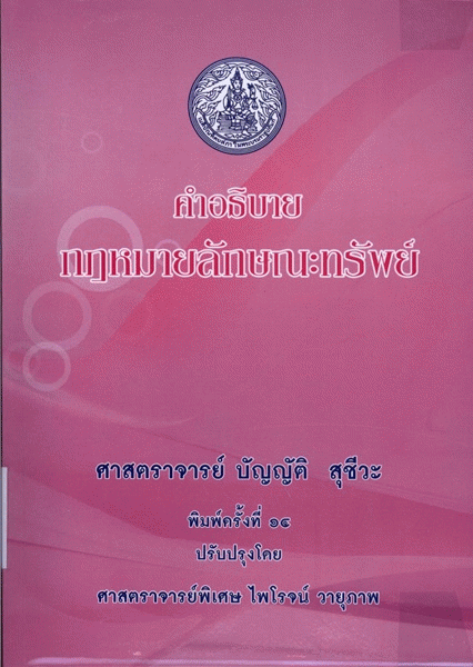 คำอธิบายกฎหมายลักษณะทรัพย์ / ผู้แต่ง ศาสตราจารย์ บัญญัติ สุชีวะ ; ปรับปรุงโดย ศาสตราจารย์พิเศษ ไพโรจน์ วายุภาพ.