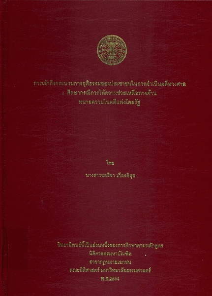 การเข้าถึงกระบวนการยุติธรรมของประชาชนในการดำเนินคดีทางศาล : ศึกษากรณีการให้ความช่วยเหลือทางด้านทนายความในคดีแพ่งโดยรัฐ / ชลธิชา เกียรติสุข.