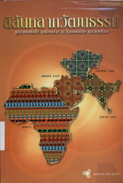 สีสันหลากวัฒนธรรม : ภูมิภาคเอเชียใต้ เอเชียกลาง ตะวันออกกลาง และแอฟริกา / บรรณาธิการ นาฎนภางค์ ดำรงสุนทรชัย.
