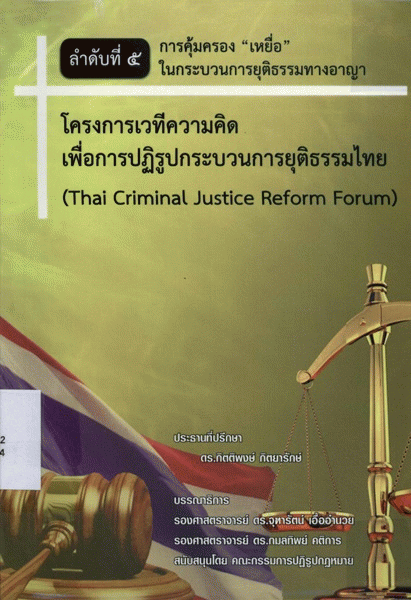 โครงการเวทีความคิดเพื่อการปฏิรูปกระบวนการยุติธรรมไทย ลำดับที่ 5 การคุ้มครอง "เหยื่อ" ในกระบวนการยุติธรรมทางอาญา / บรรณาธิการ จุฑารัตน์ เอื้ออำนวย, กมลทิพย์ คติการ.