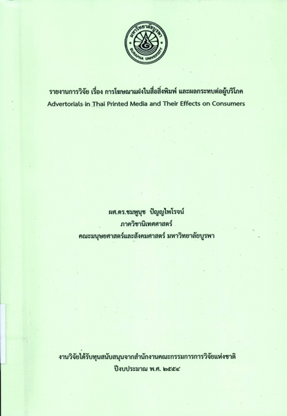 การโฆษณาแฝงในสื่อสิ่งพิมพ์ และผลกระทบต่อผู้บริโภค / ชมพูนุช ปัญญไพโรจน์.