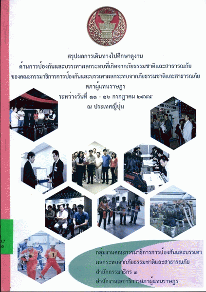 สรุปผลการเดินทางไปศึกษาดูงานของคณะกรรมาธิการการป้องกันและบรรเทาผลกระทบจากภัยธรรมชาติและสาธารณภัย สภาผู้แทนราษฎร ด้านการป้องกันและบรรเทาผลกระทบที่เกิดจากภัยธรรมชาติและสาธารณภัยระหว่างวันที่ 11-16 กรกฎาคม 2555 ณ ประเทศญี่ปุ่น / สำนักกรรมาธิการ 3 สำนักงานเลขาธิการสภาผู้แทนราษฎร.