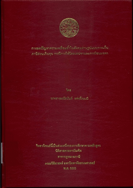 การลดปัญหาความเหลื่อมล้ำในสังคมผ่านรูปแบบการเก็บภาษีส่วนเกินทุน กรณีการให้โดยเสน่หาและการโอนมรดก / มณัสนันท์ หล่อปิ่นมณี.