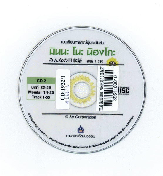 National Assembly Library of Thailand | Audio-Visual Materials collection | CD 1922/1, CD1922/2 (เรียกดูชั้นหนังสือ(เปิดด้านล่าง)) | พร้อมให้บริการ | 3961180610 |