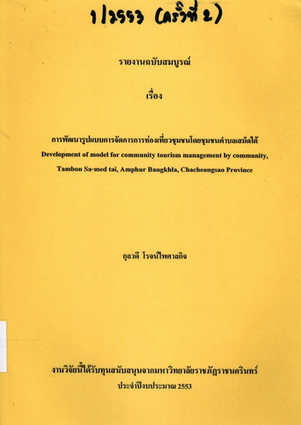 การพัฒนารูปแบบการจัดการการท่องเที่ยวชุมชนโดยชุมชนตำบลเสม็ดใต้ / กุลวดี โรจน์ไพศาลกิจ.