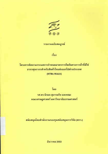 โครงการติดตามกระแสการกำหนดมาตรการกีดกันทางการค้าที่มิใช่อากรศุลกากรสำหรับสินค้าไทยส่งออกไปต่างประเทศ (NTMs Watch) / นิรมล สุธรรมกิจ.