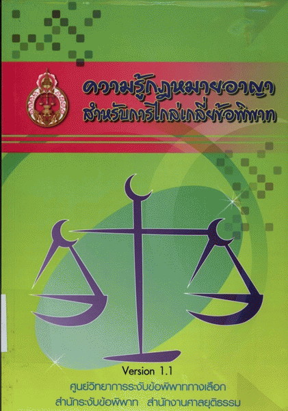 ความรู้กฎหมายอาญาสำหรับการไกล่เกลี่ยข้อพิพาท / สำนักงานศาลยุติธรรม ; สรวิศ ลิมปรังษี, บรรณาธิการ.