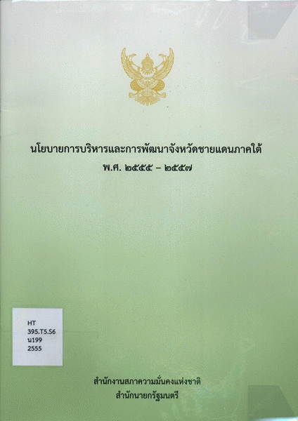นโยบายการบริหารและการพัฒนาจังหวัดชายแดนภาคใต้ พ.ศ. 2555 - 2557 / สำนักงานสภาความมั่นคงแห่งชาติ.