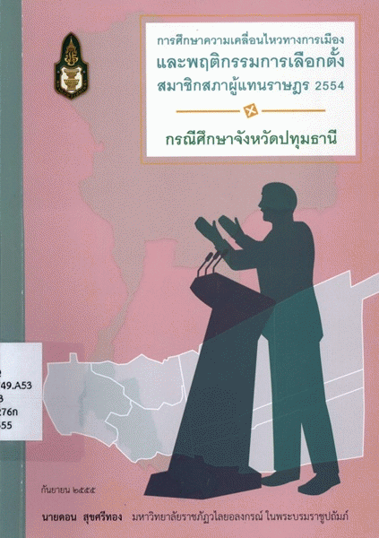 การศึกษาความเคลื่อนไหวทางการเมืองและพฤติกรรมการเลือกตั้งสมาชิกสภาผู้แทนราษฎร 2554 กรณีศึกษาจังหวัดปทุมธานี / ดอน สุขศรีทอง.