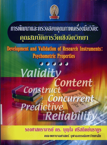 การพัฒนาและตรวจสอบคุณภาพเครื่องมือวิจัย : คุณสมบัติการวัดเชิงจิตวิทยา / บุญใจ ศรีสถิตย์นรากูร.