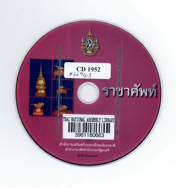 National Assembly Library of Thailand | Audio-Visual Materials collection | CD 1952 (เรียกดูชั้นหนังสือ(เปิดด้านล่าง)) | พร้อมให้บริการ | 3961180663 |