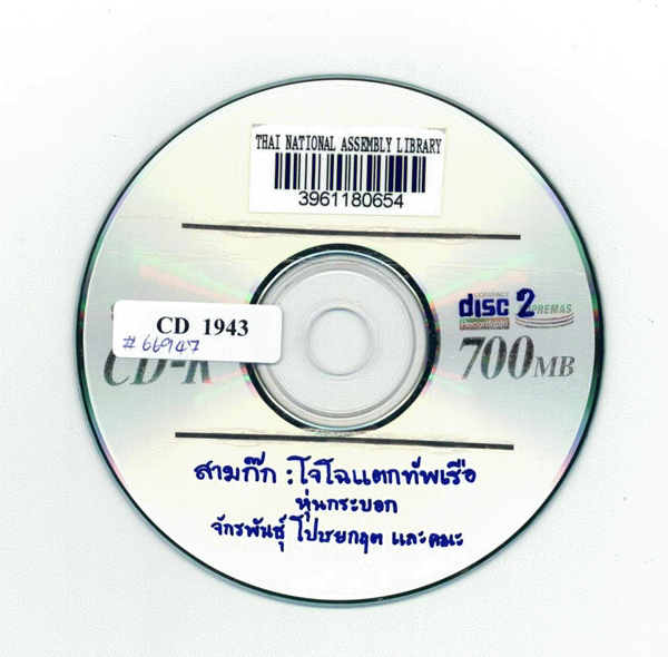 National Assembly Library of Thailand | Audio-Visual Materials collection | CD 1943 (เรียกดูชั้นหนังสือ(เปิดด้านล่าง)) | พร้อมให้บริการ | 3961180654 |