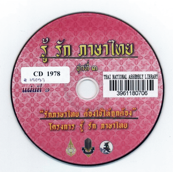 National Assembly Library of Thailand | Audio-Visual Materials collection | CD 1978 (เรียกดูชั้นหนังสือ(เปิดด้านล่าง)) | พร้อมให้บริการ | 3961180706 |