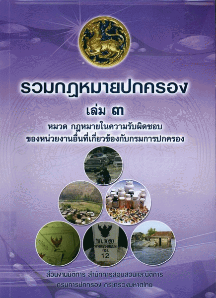 รวมกฎหมายปกครอง เล่ม 3 หมวดกฎหมายในความรับผิดชอบของหน่วยงานอื่นที่เกี่ยวข้องกับกรมการปกครอง / ส่วนงานนิติการ สำนักการสอบสวนและนิติการ. กรมการปกครอง.