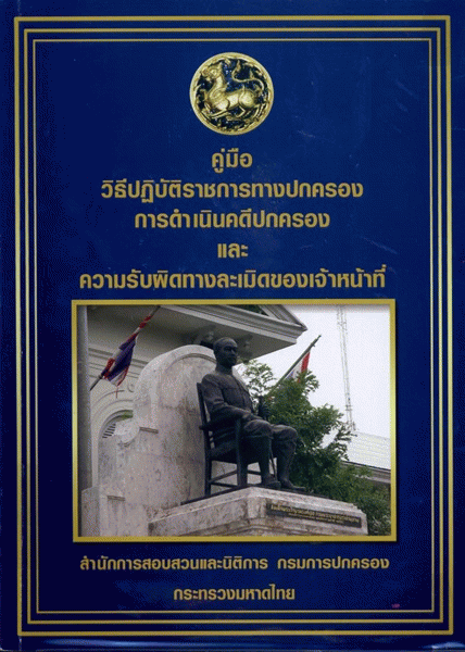 คู่มือวิธีปฏิบัติราชการทางปกครอง การดำเนินคดีปกครอง และความรับผิดทางละเมิดของเจ้าหน้าที่ / สำนักการสอบสวนและนิติการ กรมการปกครอง.