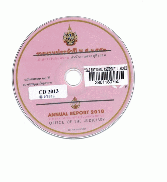 รายงานประจำปี พ.ศ. 2553 สำนักระงับข้อพิพาท สำนักงานศาลยุติธรรม [CD-ROM]