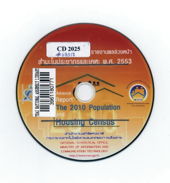 รายงานผลล่วงหน้าสำมะโนประชากรและเคหะ พ.ศ. 2553 [CD-ROM]