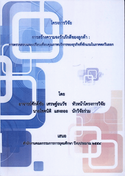 การสร้างความจงรักภักดีของลูกค้า : การตรวจสอบและเปรียบเทียบคุณภาพบริการของธุรกิจที่พักแรมในภาคตะวันออก / โชคนิติ แสงลออ.