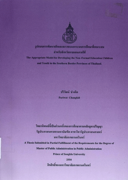 รูปแบบการพัฒนาเด็กและเยาวชนนอกระบบการศึกษาที่เหมาะสมสำหรับจังหวัดชายแดนภาคใต้ / วรวุฒิ นาครุ่ง.