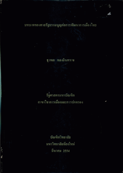 บทบาทของศาลรัฐธรรมนูญต่อการพัฒนาการเมืองไทย / ธุวพล ทองอินทราช.