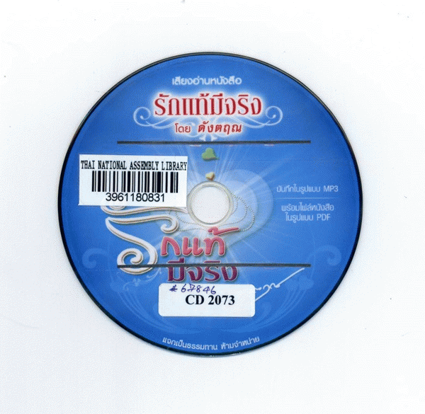 National Assembly Library of Thailand | Audio-Visual Materials collection | CD 2073 (เรียกดูชั้นหนังสือ(เปิดด้านล่าง)) | พร้อมให้บริการ | 3961180831 |