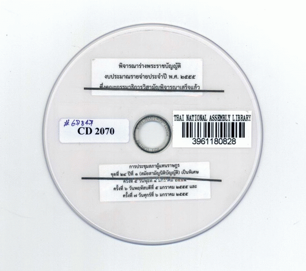 National Assembly Library of Thailand | Audio-Visual Materials collection | CD 2070 (เรียกดูชั้นหนังสือ(เปิดด้านล่าง)) | พร้อมให้บริการ | 3961180828 |