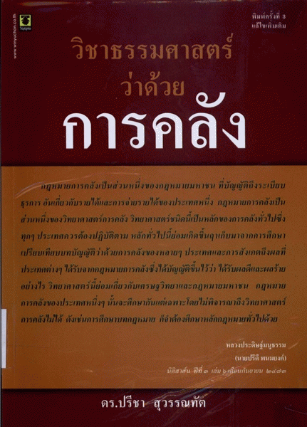วิชาธรรมศาสตร์ว่าด้วยการคลัง / ปรีชา สุวรรณทัต.