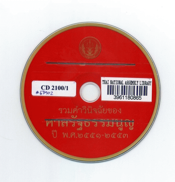 National Assembly Library of Thailand | Audio-Visual Materials collection | CD 2100/1, CD2100/2 (เรียกดูชั้นหนังสือ(เปิดด้านล่าง)) | ฉ. 1 | พร้อมให้บริการ | 3961180865 |