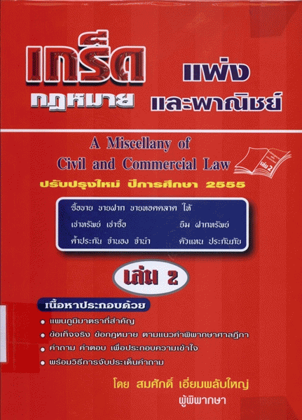 National Assembly Library of Thailand | Law Book collection | KS 33 ส284ก 2555 (เรียกดูชั้นหนังสือ(เปิดด้านล่าง)) | ล.2 ฉ. 2 | พร้อมให้บริการ | 3961191842 |