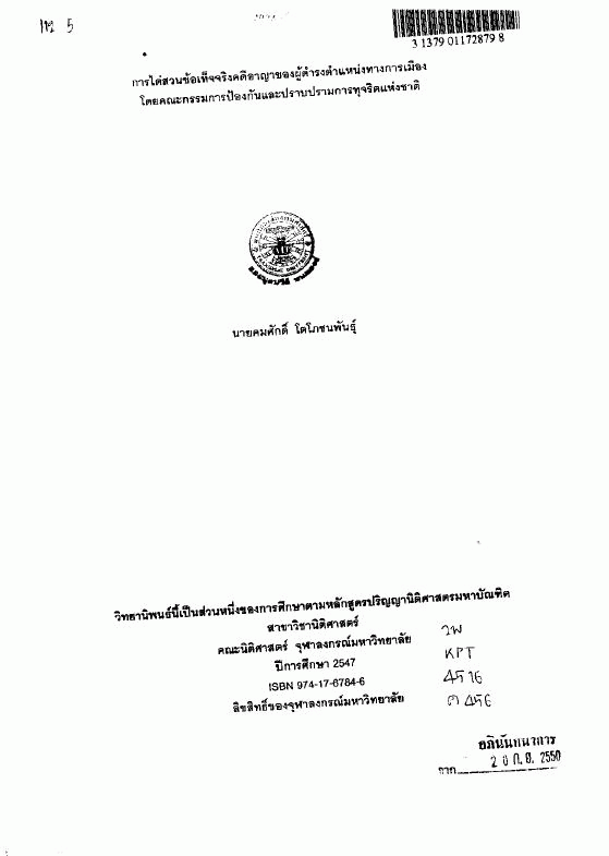 การไต่สวนข้อเท็จจริงคดีอาญาของผู้ดำรงตำแหน่งทางการเมืองโดยคณะกรรมการป้องกันและปราบปรามการทุจริตแห่งชาติ / สมศักดิ์ โตโภชนพันธุ์.